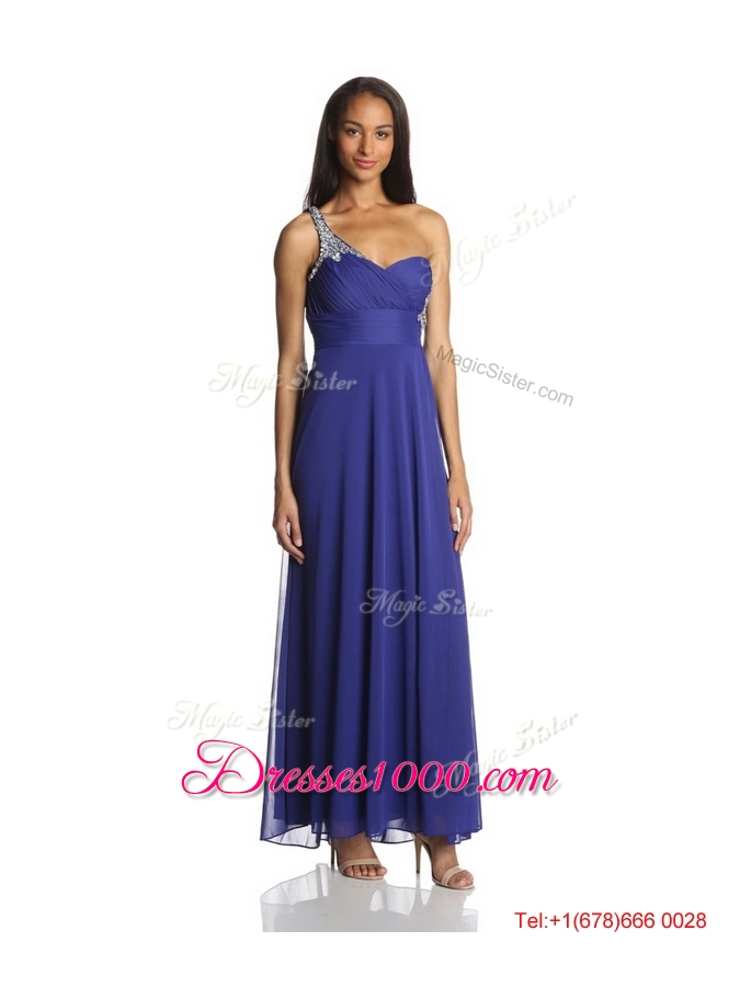 Beautiful Empire One Shoulder Ankle Length Chiffon Prom Dresses in Blue