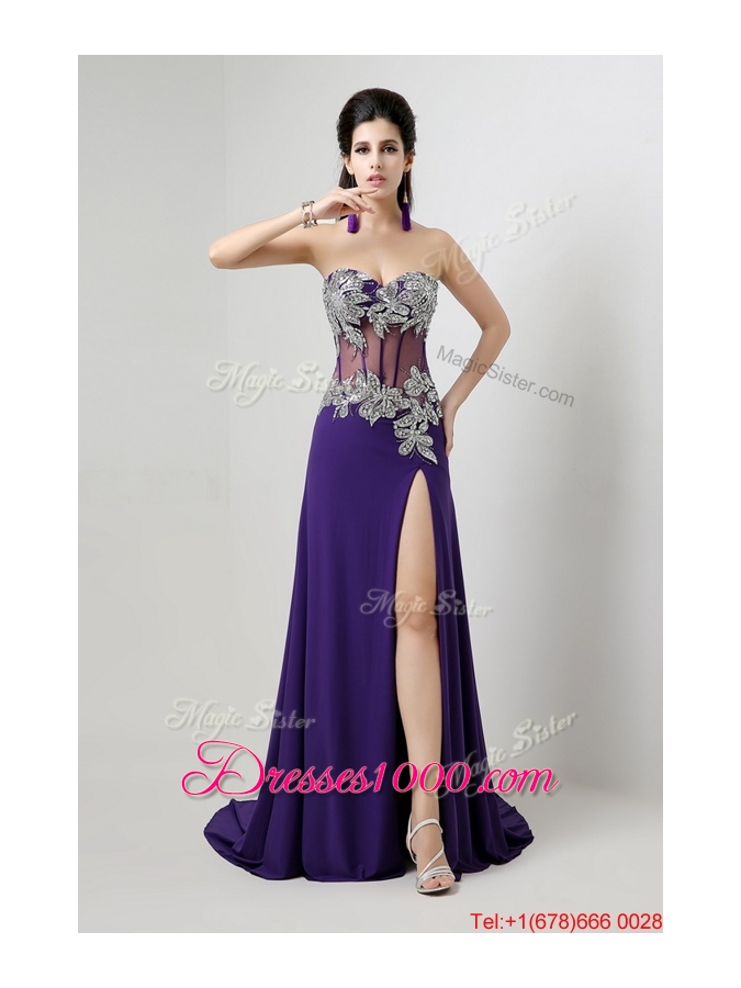 Beautiful Brush Train Prom Dresses with Beading and High Slit