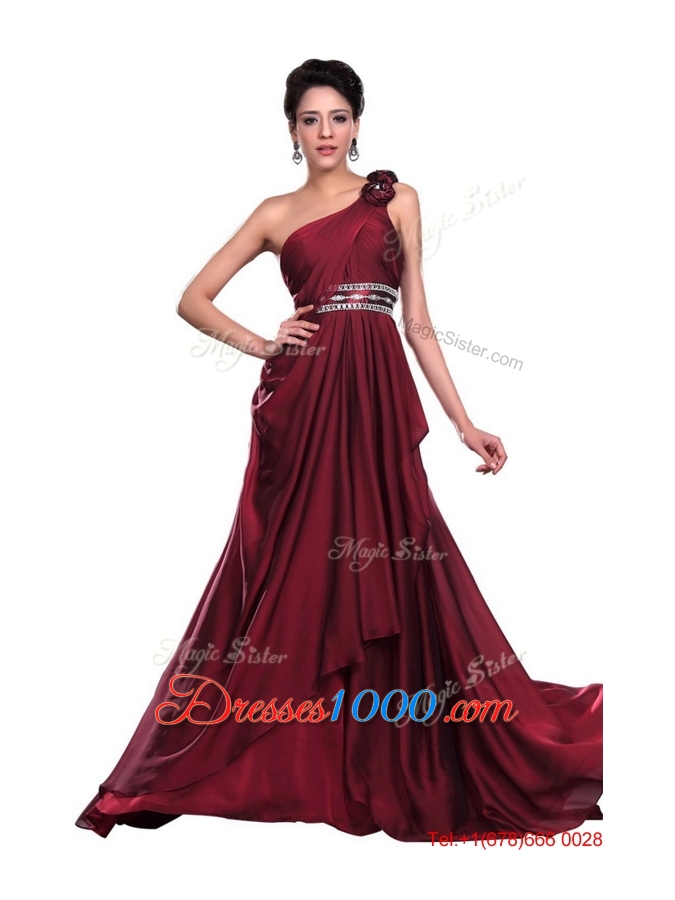 Wine Red Long Prom Dress with Beading and Hand Made Flowers