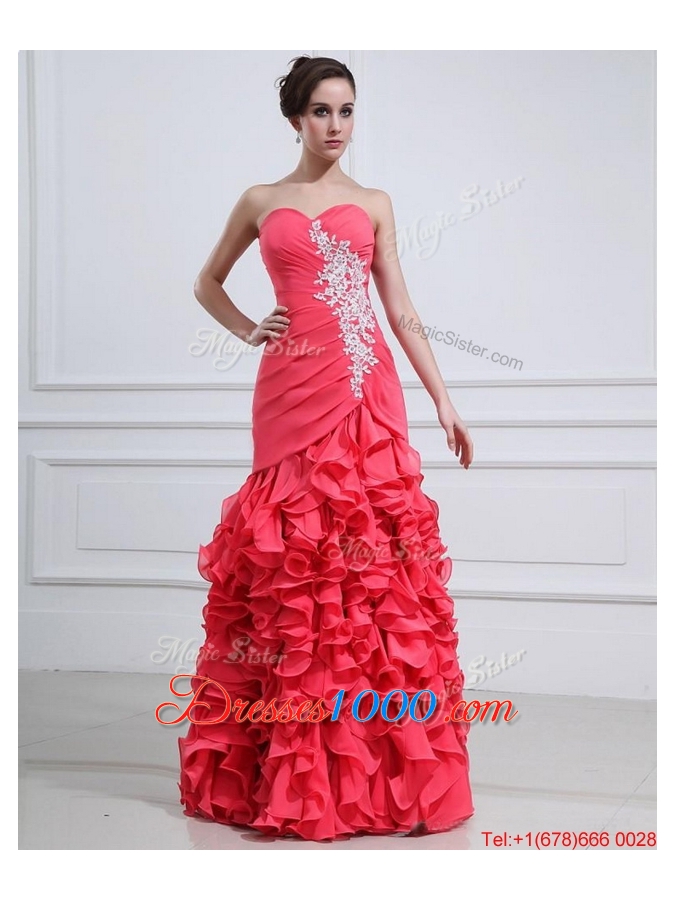 2016 Pretty Appliques and Ruffles Mermaid Prom Dress