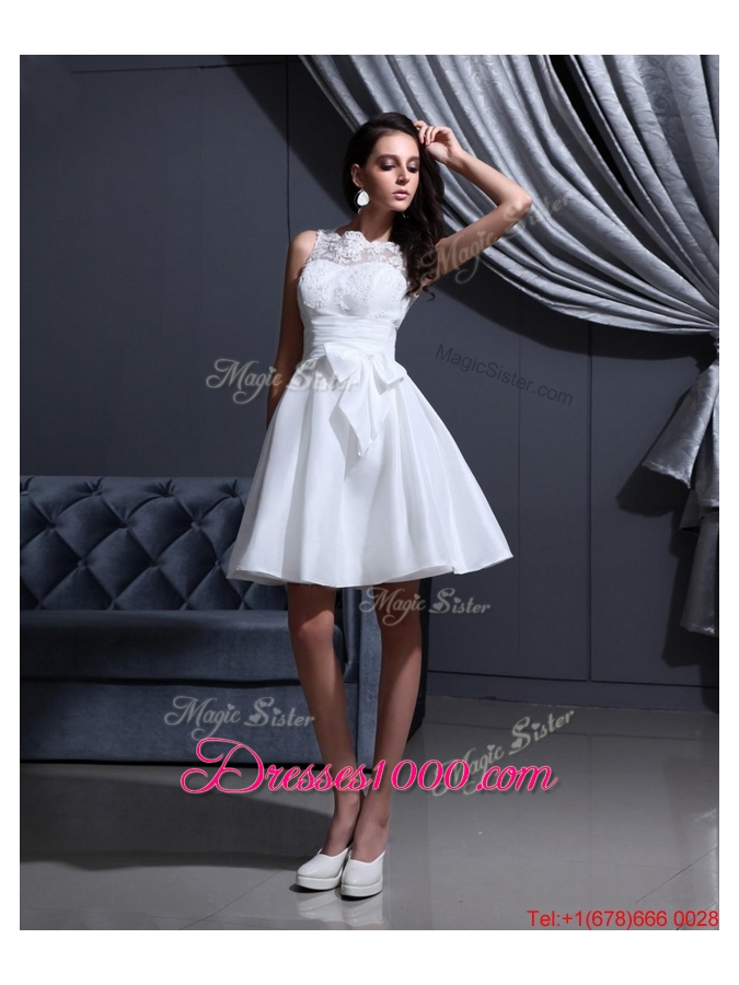 New Style White A Line Prom Gowns with Lace and Bowknot