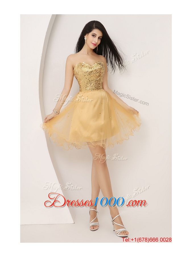 Luxurious A Line Gold Sweetheart Prom Gowns with Lace Up