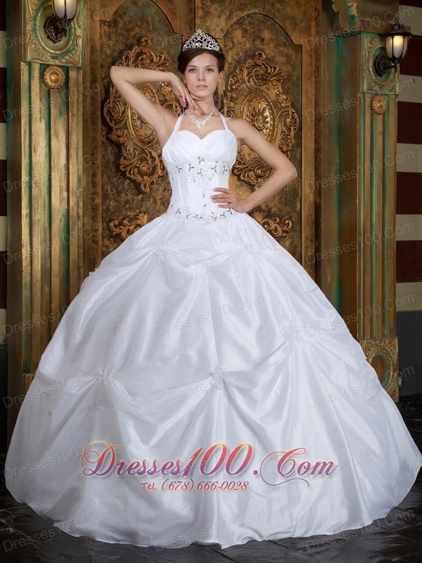 2013 Cheap White Halter Beading Taffeta Quinceanera Dress