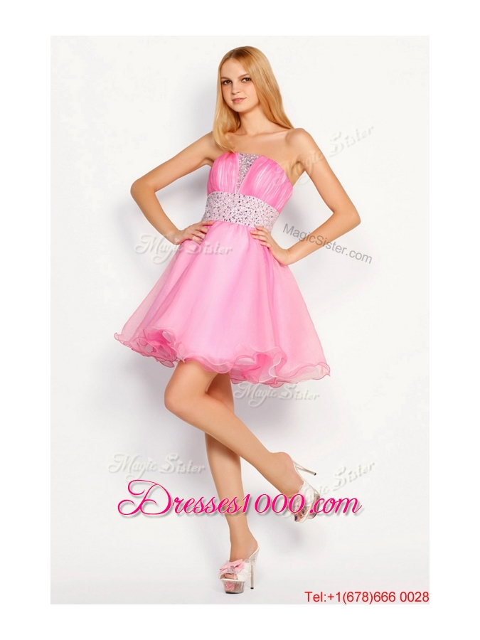 Beautiful Rose Pink Short Prom Dresses with Beading for 2016