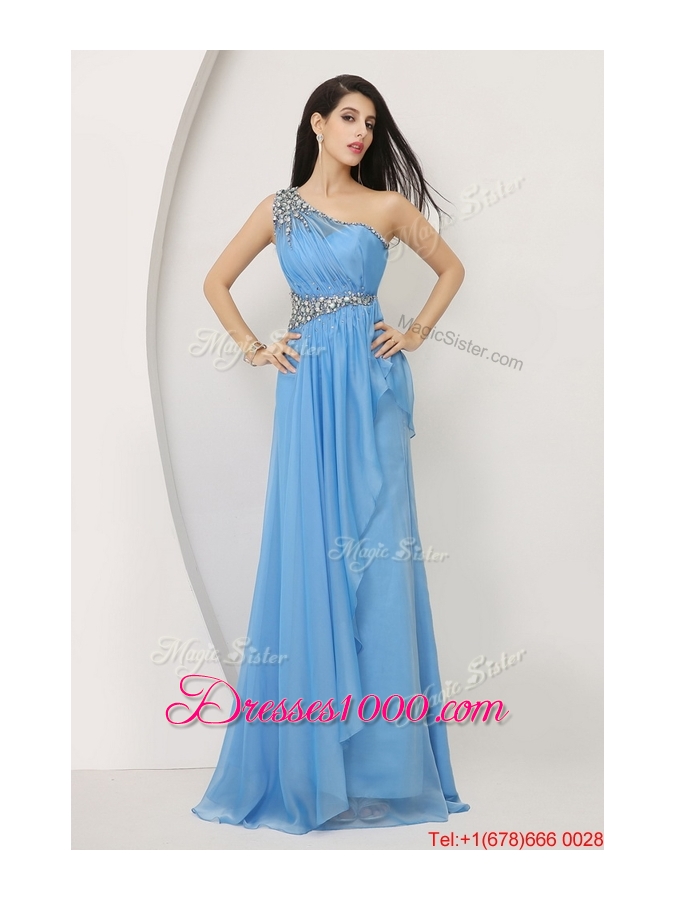 2016 Discount Beaded Baby Blue Prom Dresses with One Shoulder