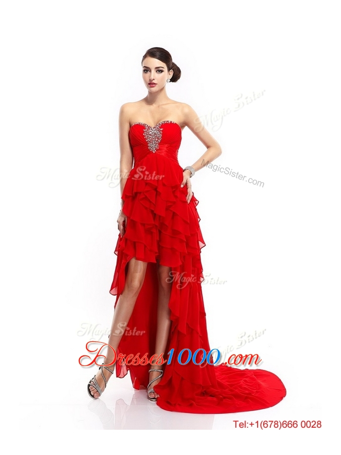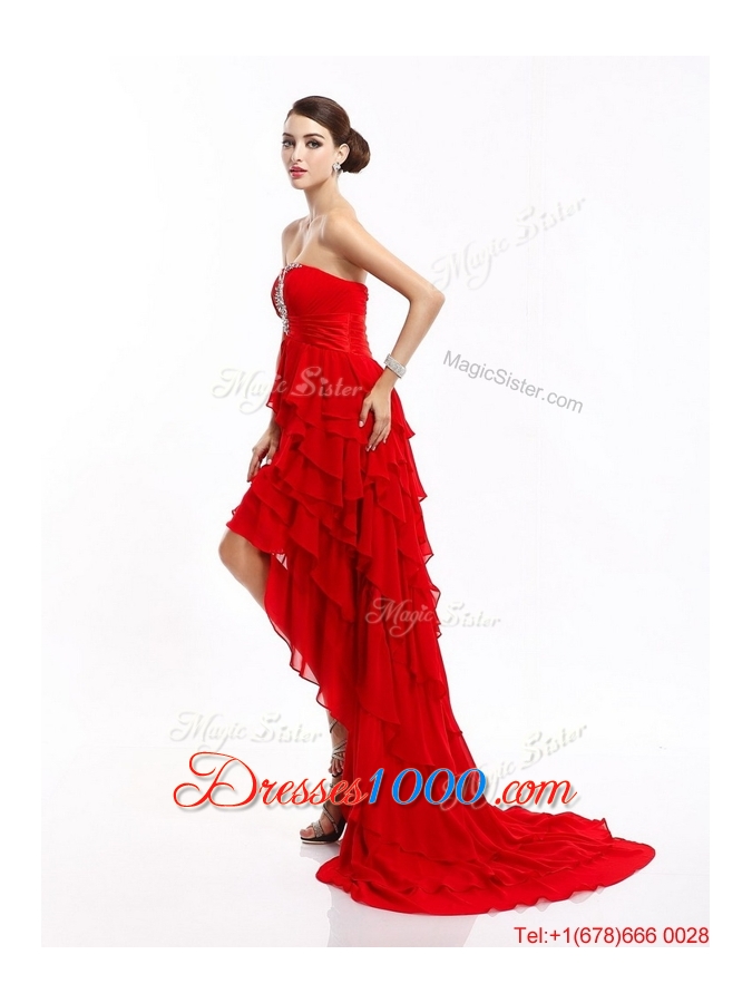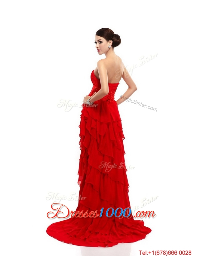 Fashionable High Low Lace Up Prom Gowns with Ruffled Layers for 2016
