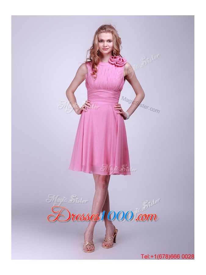 Gorgeous Rose Pink Prom Dresses with Pleats and Hand Made Flowers for 2016