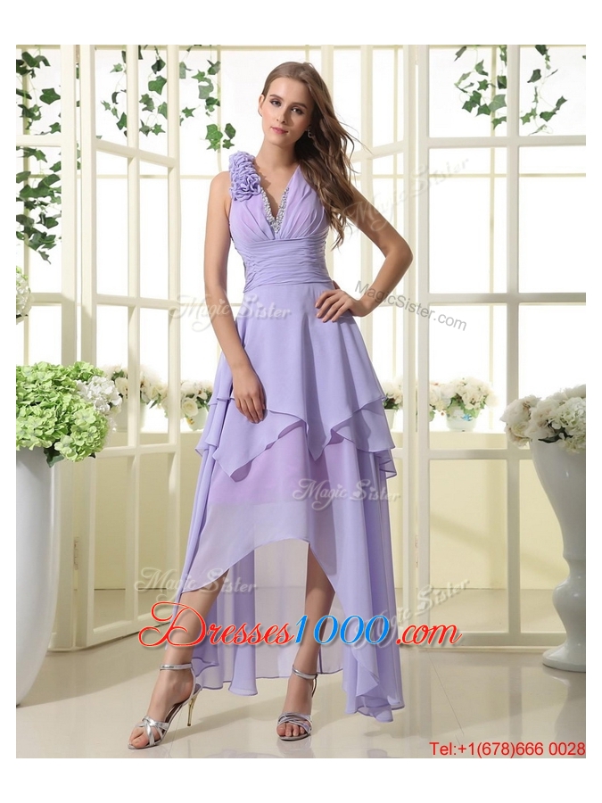 Pretty Empire V Neck Prom Dresses with High Low in Lavender