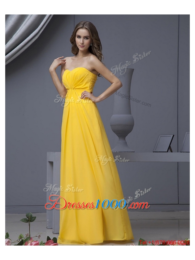New Style Empire Ruching Yellow Long Prom Dresses