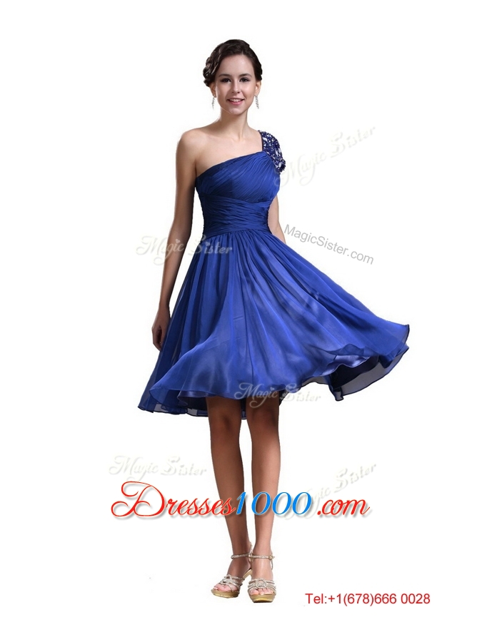 New Style One Shoulder Short Prom Dresses in Royal Blu