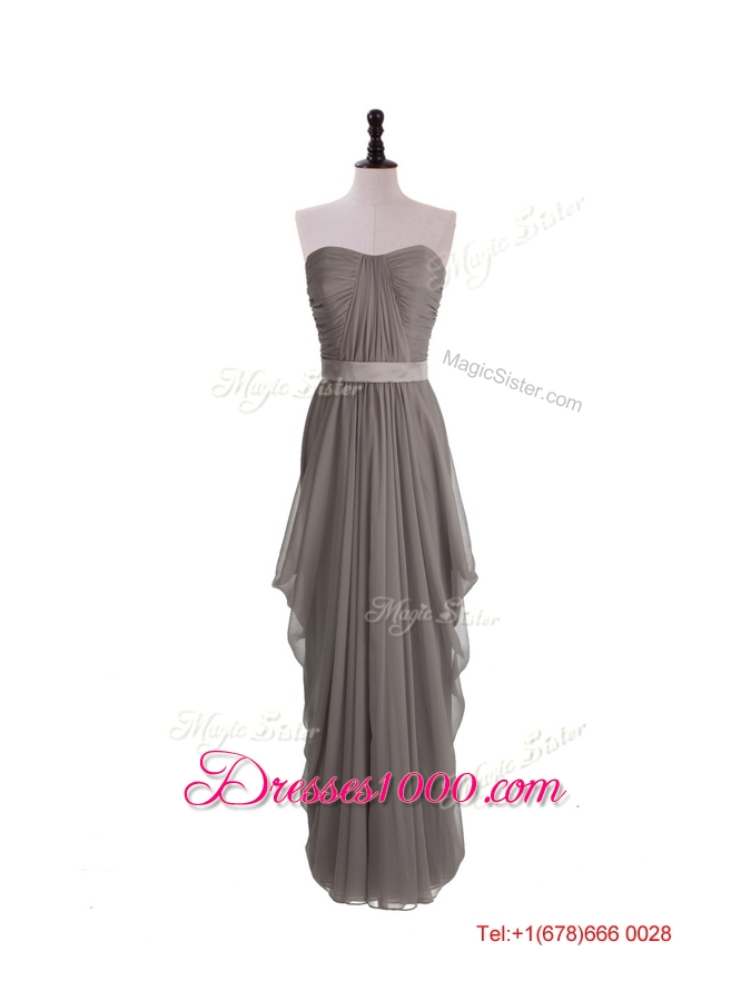 2016 Beautiful Grey Long Prom Dresses with Ruching and Belt