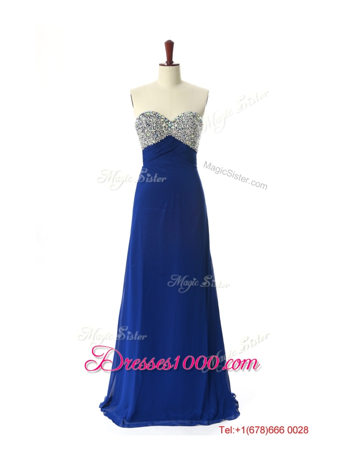 Perfect 2016 Beading Sweep Train Prom Dresses in Royal Blue