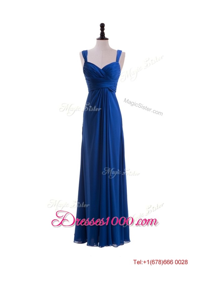 Custom Made Empire Straps Prom Dresses with Ruching in Blue for 2016