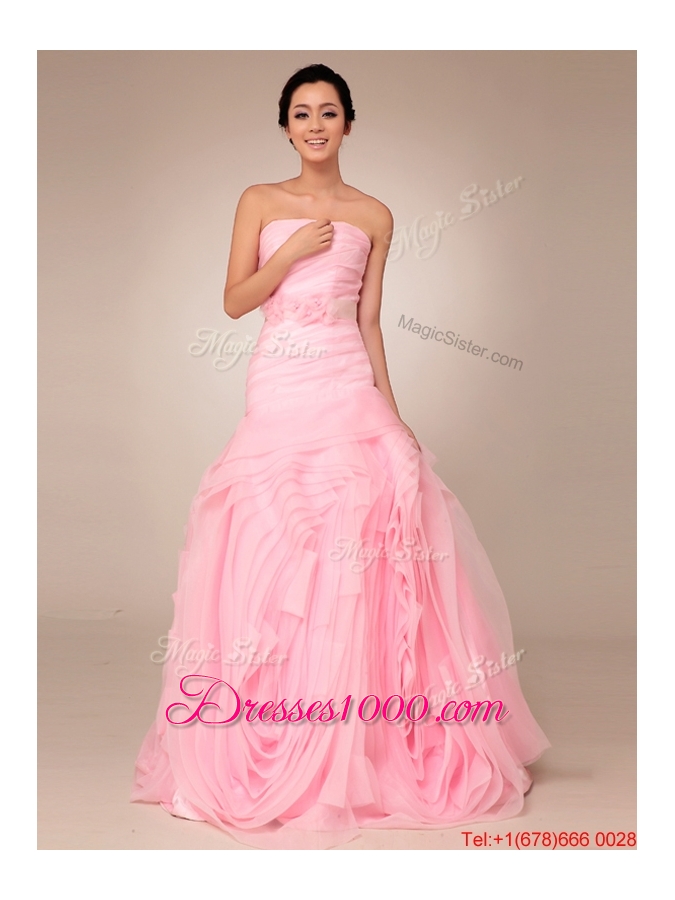 Great Remarkable Baby Pink Wedding Dresses with Rolling Flowers and Bowknot
