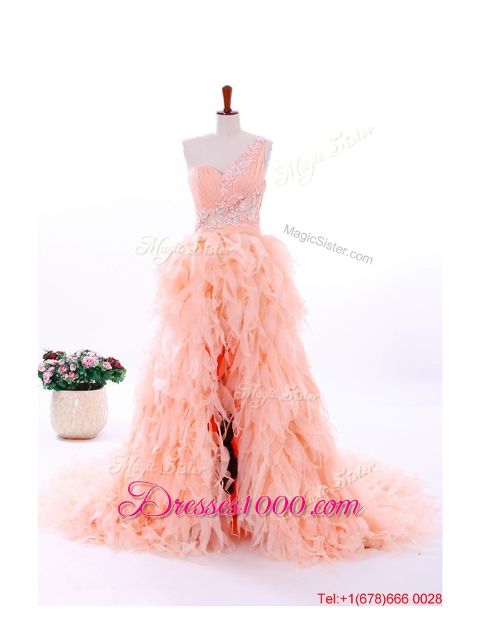 Pretty Romantic A Line One Shoulder Ruffles Wedding Gowns in Watermelon Red