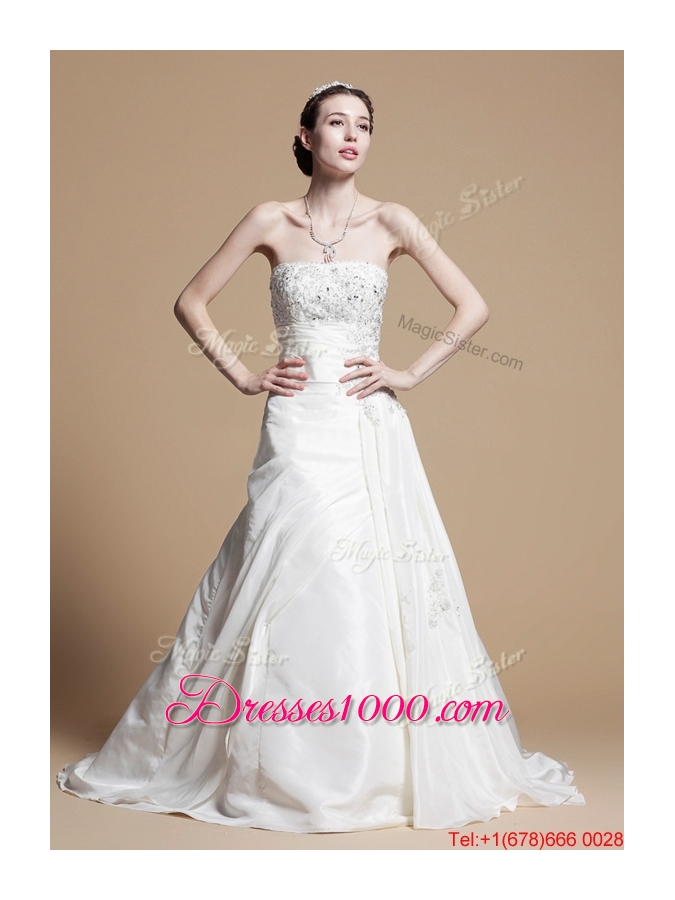Pretty Classical A Line Strapless Wedding Gowns with Beading and Appliques