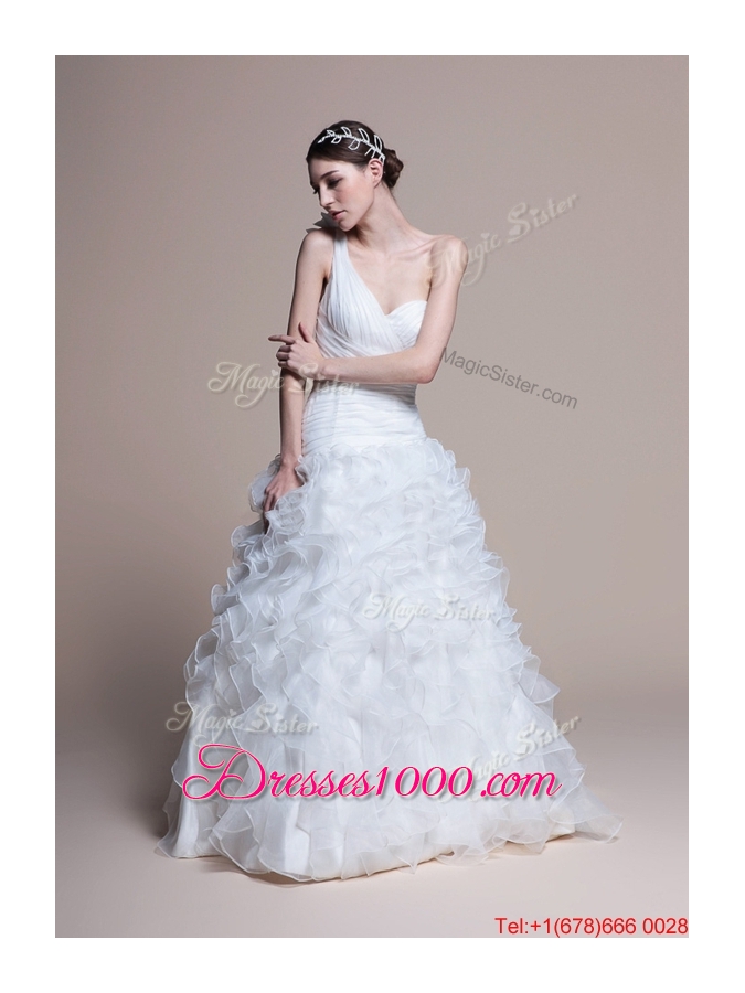 Pretty Classical A Line One Shoulder Wedding Dresses with Ruffles