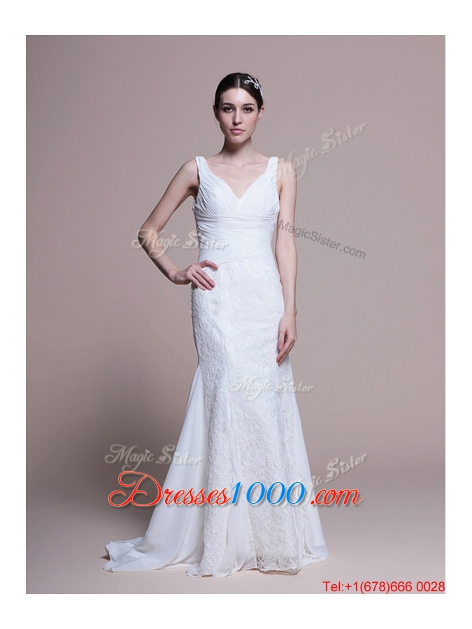 Great Perfect Mermaid Lace Brush Train Wedding Dresses for Garden