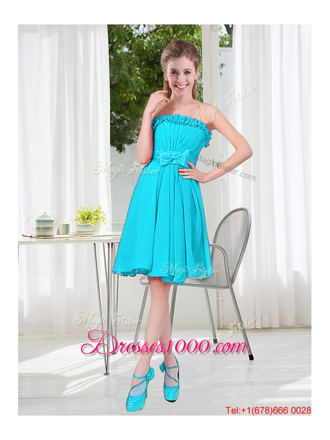 Custom Made A Line Strapless Prom Dresses with Bowknot