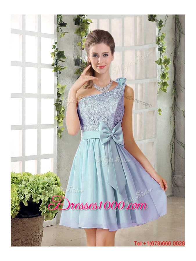 2016 Summer A Line One Shoulder Prom Dresses with Lace