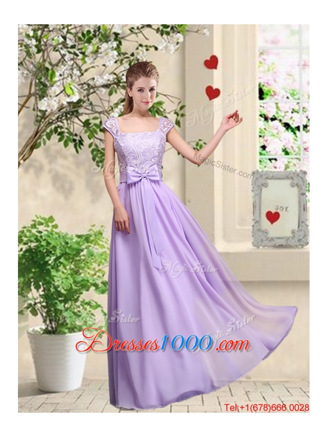 New Style Laced and Bowknot Prom Dresses with Square
