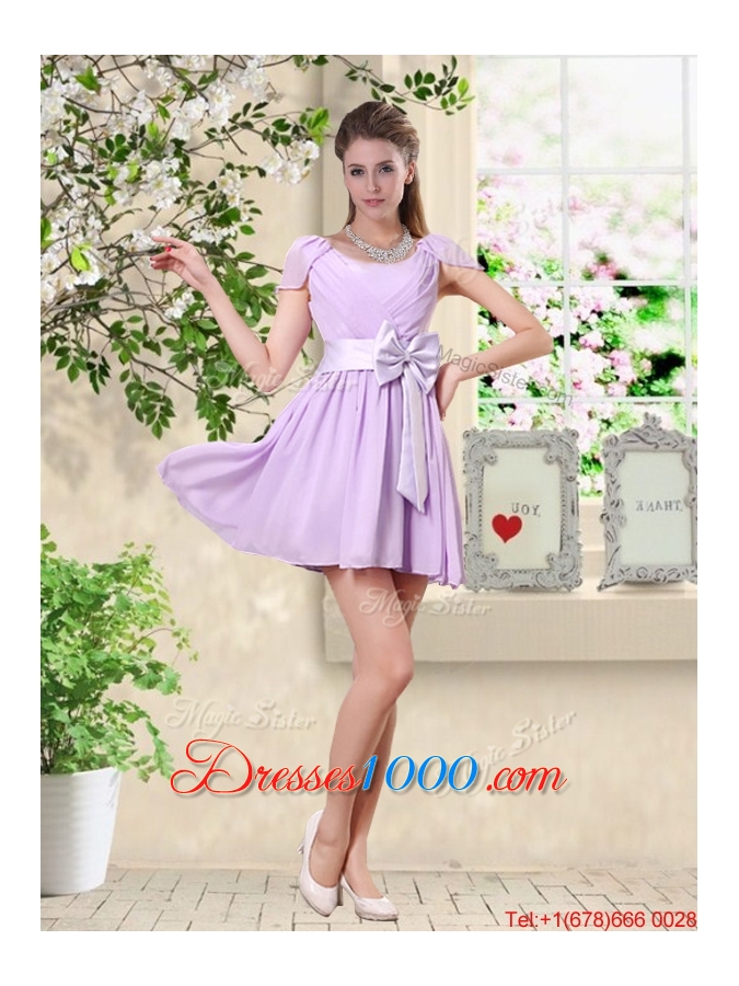 Decent Scoop Bowknot Prom Dresses with Cap Sleeves