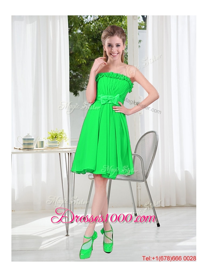 Romantic A Line Strapless 2016 Prom Dresses with Bowknot