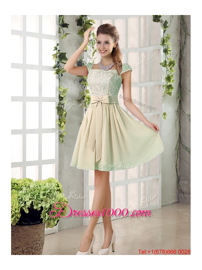 2016 Spring A Line Square Prom Dresses with Bowknot