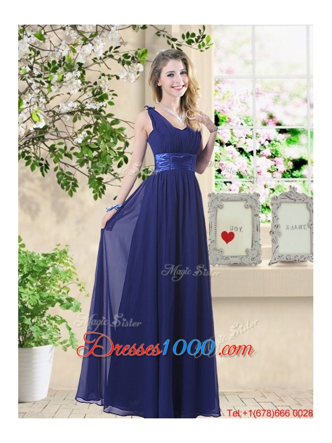 Wonderful Ruched Navy Blue Prom Dresses with V Neck