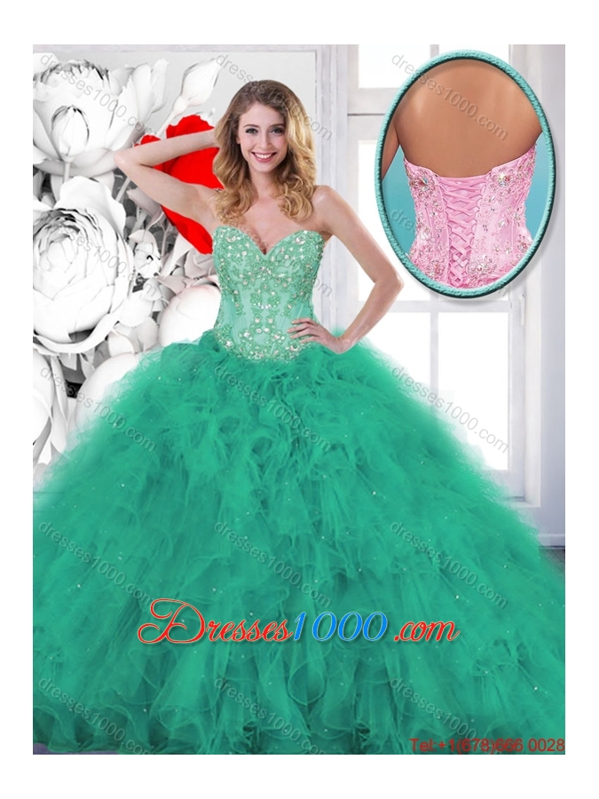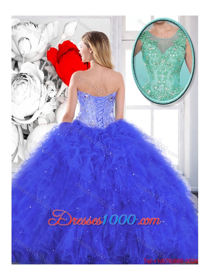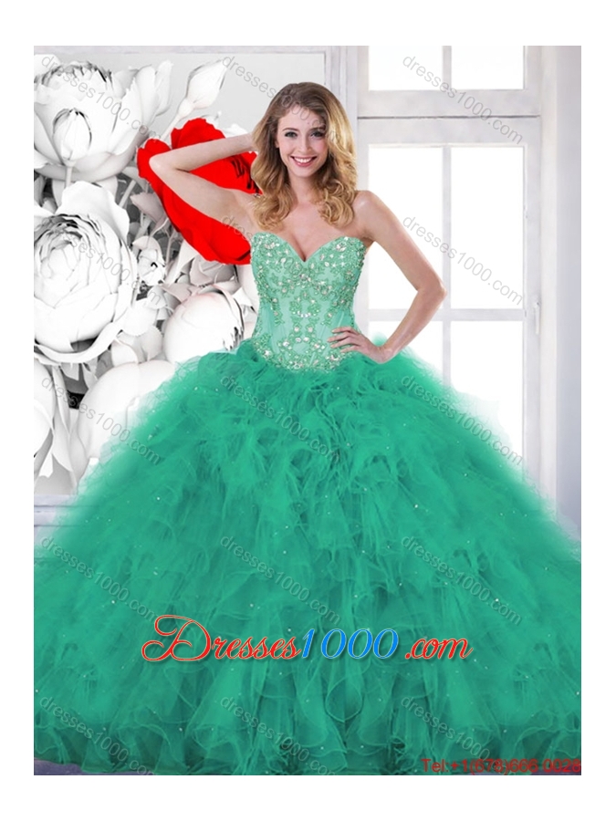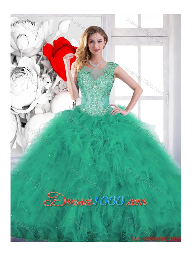 Fashionable Beading and Appliques Sweet 16 Gowns in Turquoise for 2016 Spring