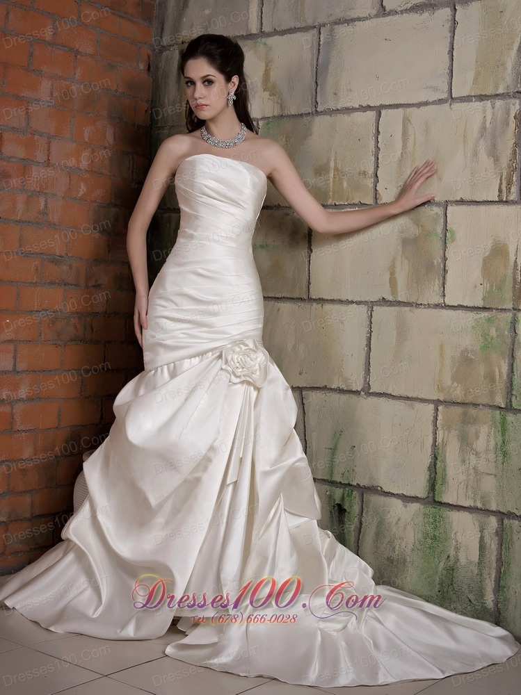 Mermaid Bridal Gown Pleated Strapless Chapel Train