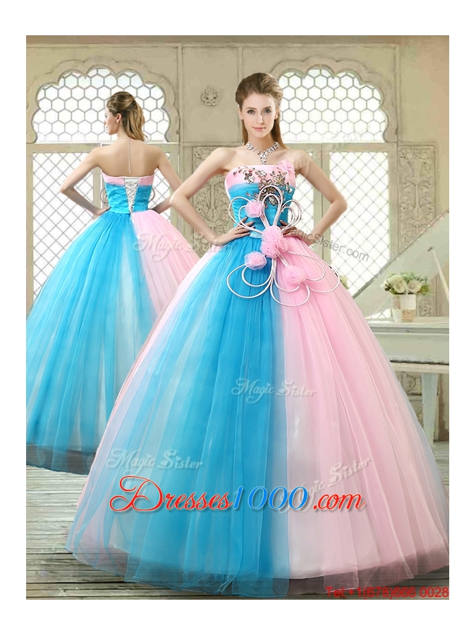 Fashionable Hand Made Flowers Sweet 16 Gowns with Strapless