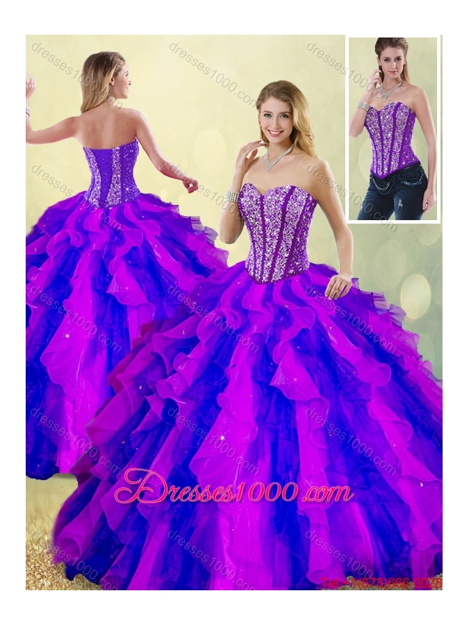 Classical Beading and Ruffles Multi Color Detachable Quinceanera Dresses