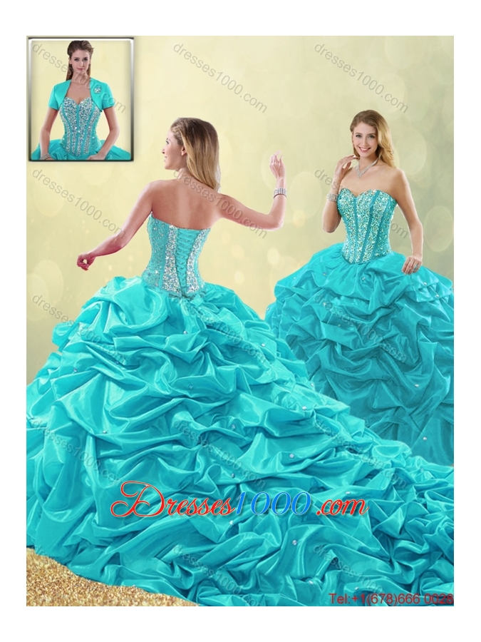 Cheap Beading and Pick Ups Detachable Quinceanera Gowns with Court Train