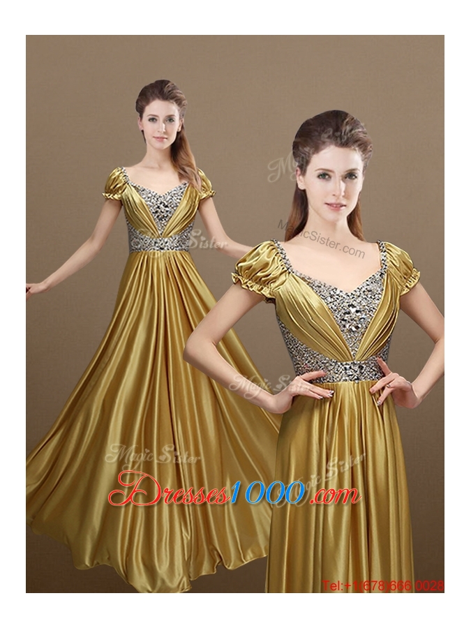Elegant Empire Short Sleeves Beading Prom Dresses for 2016
