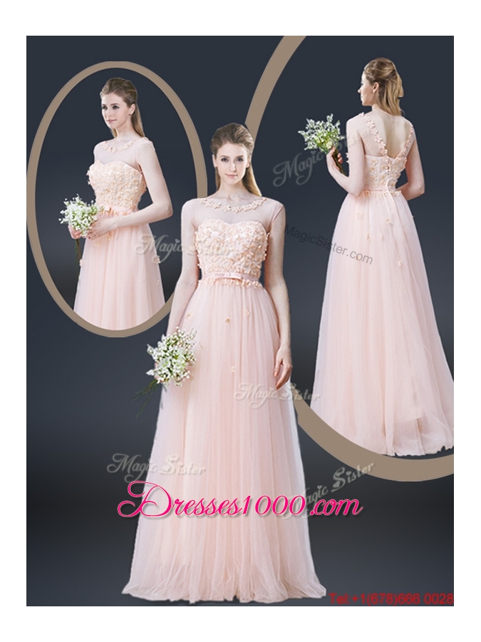 2016 Lovely Empire Bateau Prom Dresses with Appliques and Bowknot