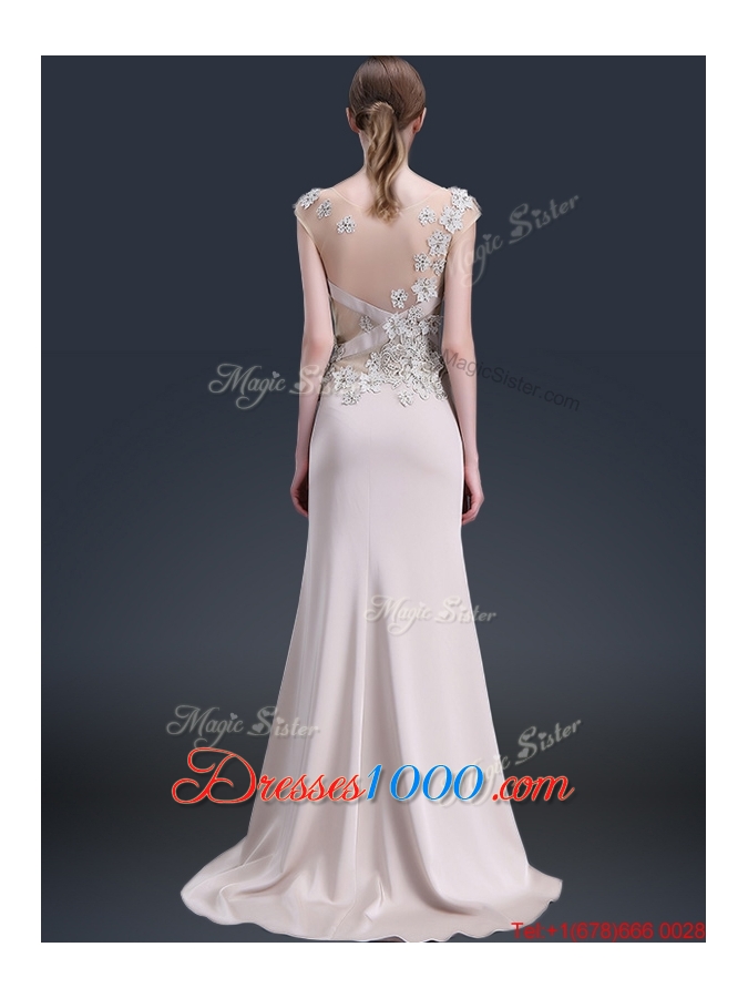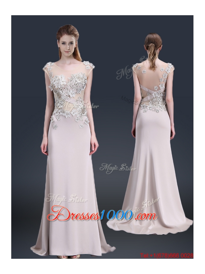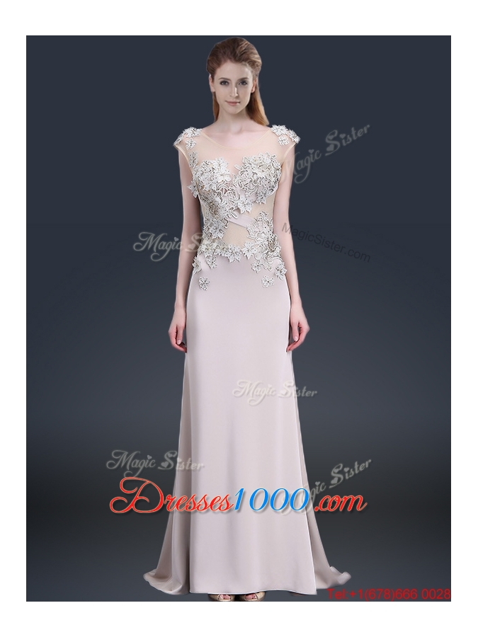 Luxurious Brush Train Cap Sleeves Prom Dresses with Appliques
