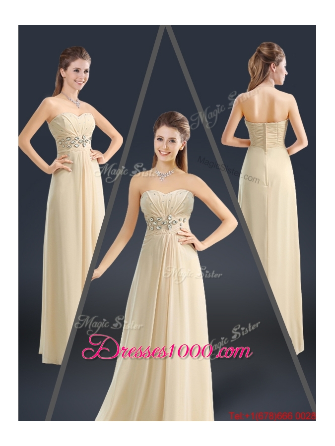 Latest Sweetheart Beading Prom Dresses in Champagne
