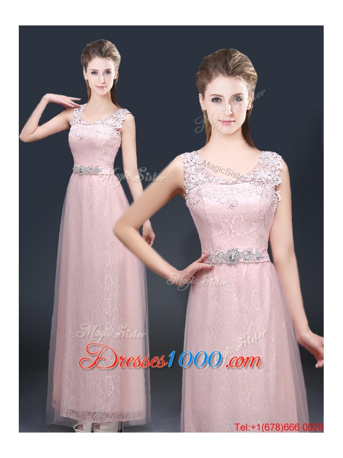2016 Pretty Empire Scoop Prom Dresses with Lace and Appliques