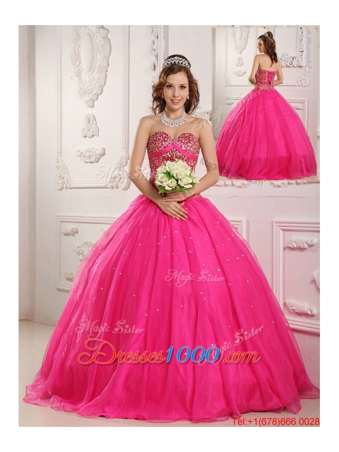 Hot Sale Hot Pink A Line Sweetheart Floor Length Quinceanera Dresses