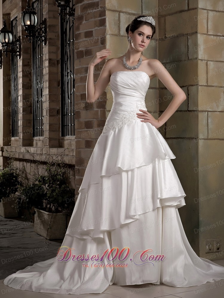 Tiered Strapless Bridal Gowns Good Quality Court Train