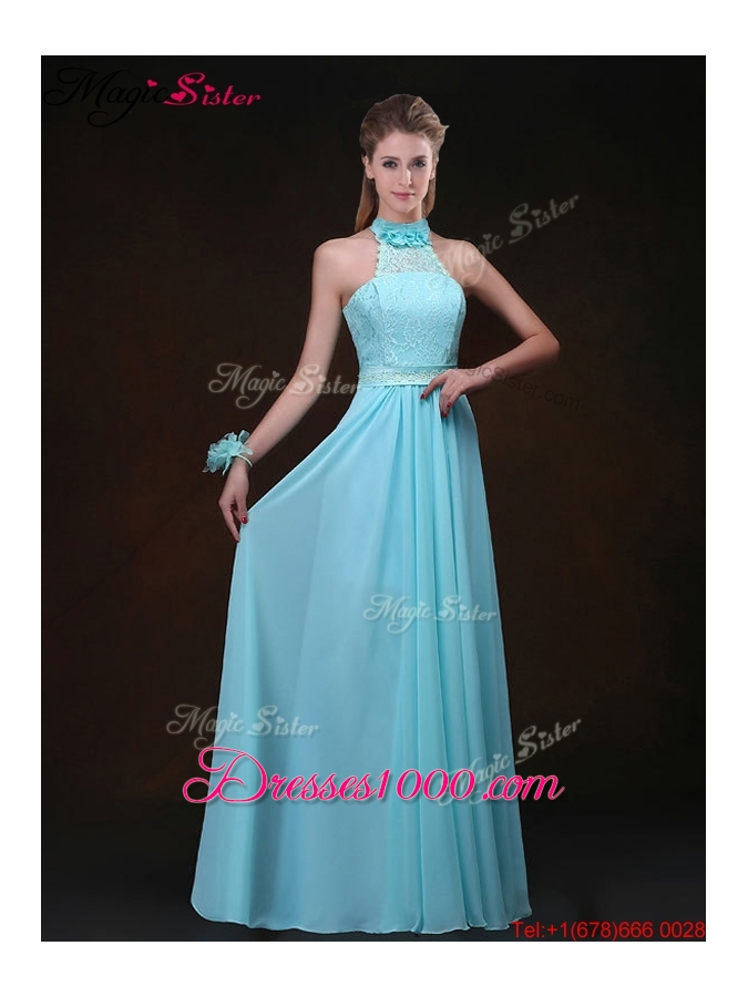 2016 Hot Sale Empire Halter Top Prom Dresses with Lace