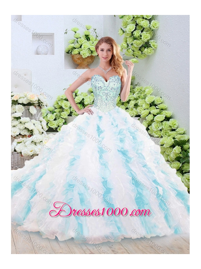 Fashionable Brush Train Quinceanera Gowns with Beading and Ruffles