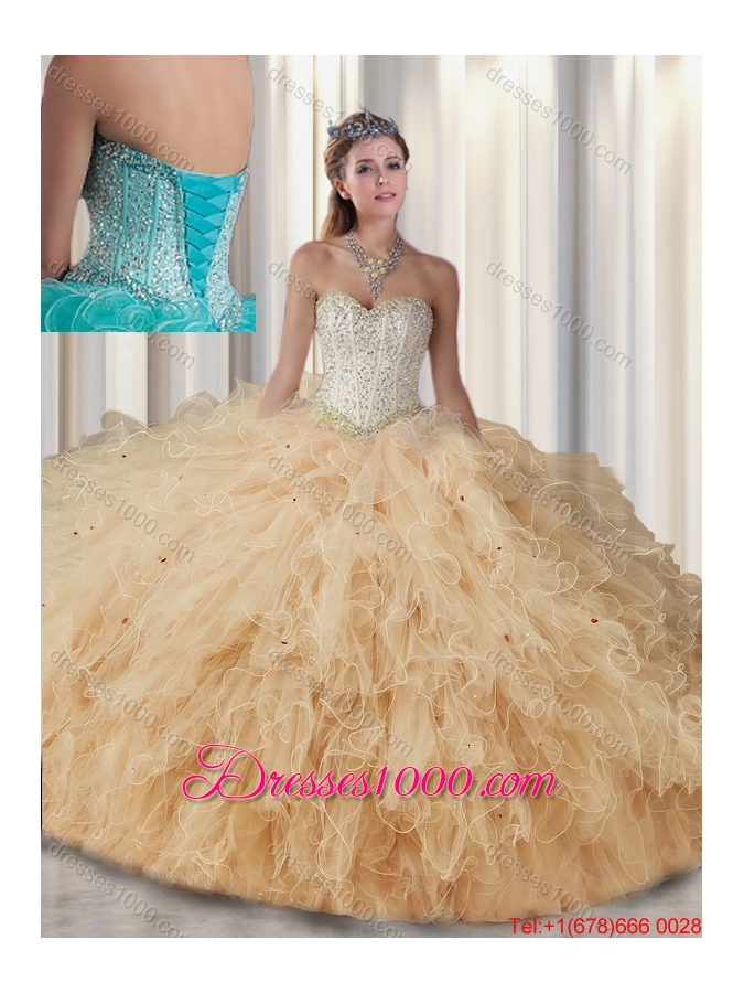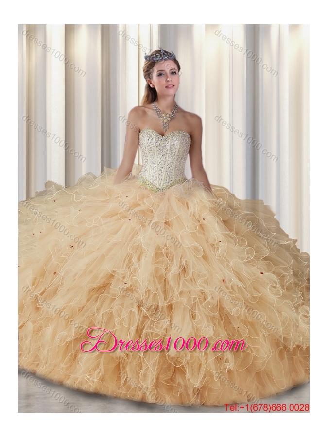 2016 Fashionable Sweetheart Beading Quinceanera Gowns in Champagne
