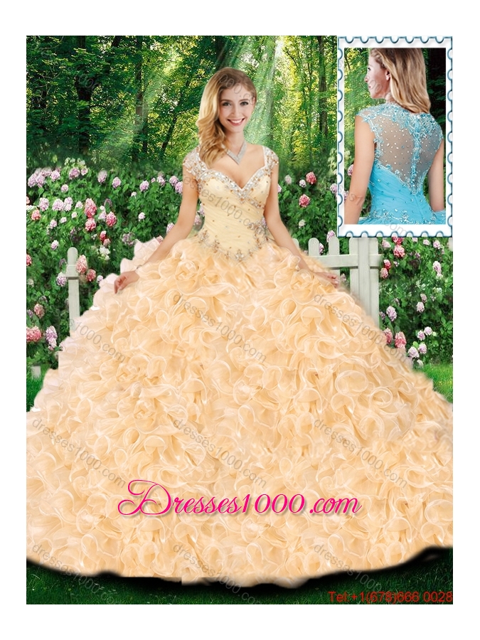 Luxurious Ball Gown Cap Sleeves Quinceanera Dresses with Beading and Ruffles for Fall