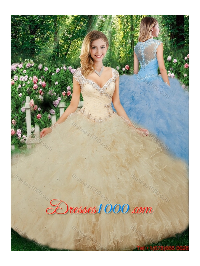 Luxurious Ball Gown Beading Quinceanera Dresses with Cap Sleeves