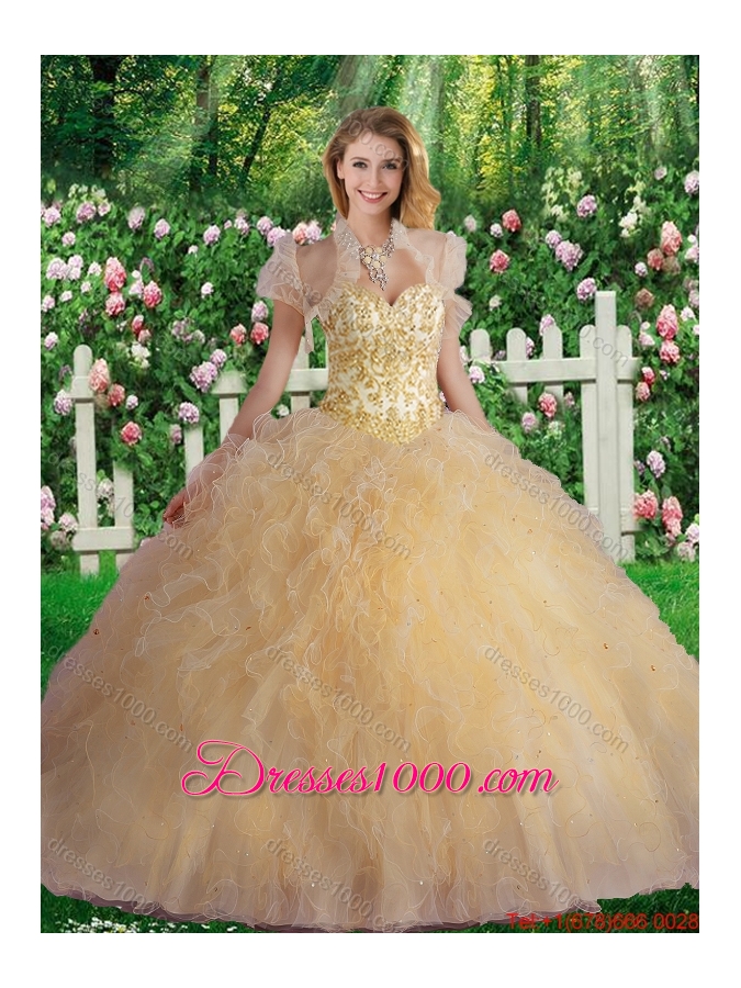 2016 Luxurious Sweetheart Champagne Quinceanera Dresses with Beading