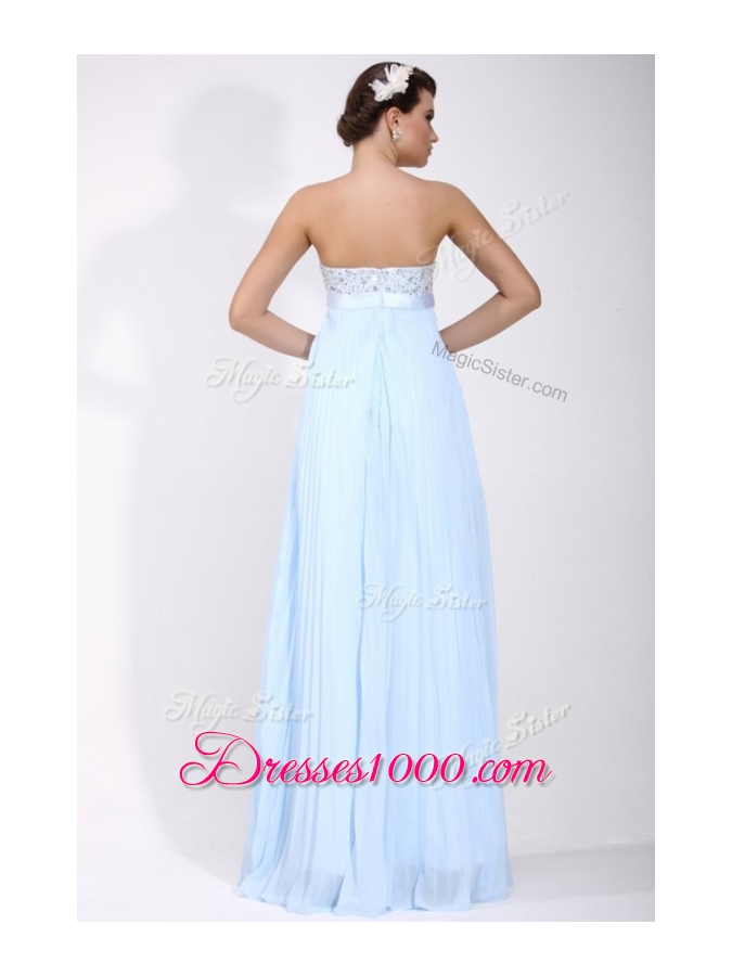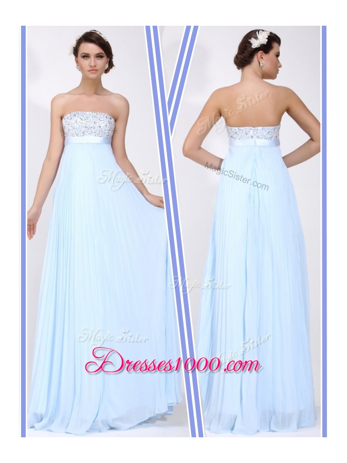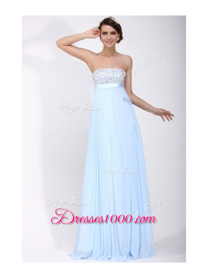 Beautiful Strapless Beading Long Prom Dress in Light Blue