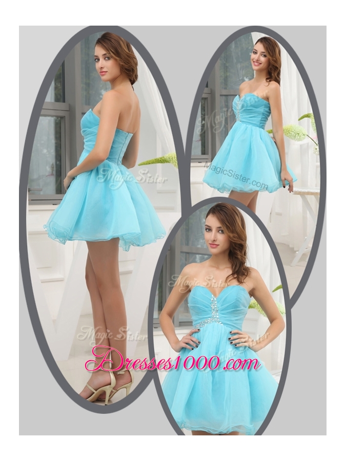 Beautiful Sweetheart Beading Short Prom Dress in Aqua Blue for Homecoming