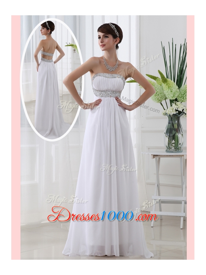 Beautiful Strapless Brush Train Beading Prom Dress in White